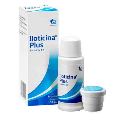Control tópico del acné vulgaris. Este medicamento pertenece a la clase de de medicamentos llamados antibióticos. Iloticina Plus 4 Solución Tópico Frasco X 50mL.