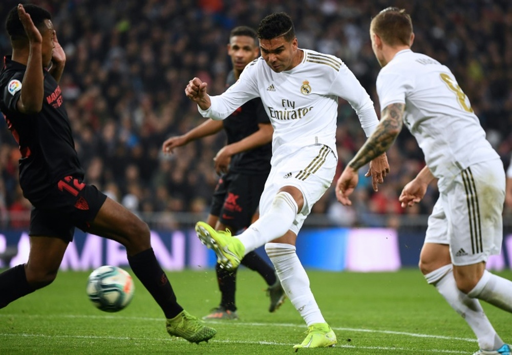 Hoy se habla de NFL. Real Madrid 2-2 Sevilla. Casemiro remata y la pelota roza el poste.